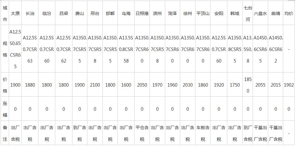 19日全國(guó)主要城市冶金焦價(jià)格匯總