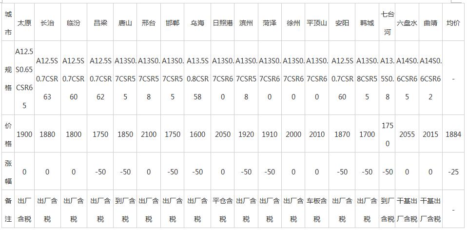 14日全國主要城市冶金焦價格匯總
