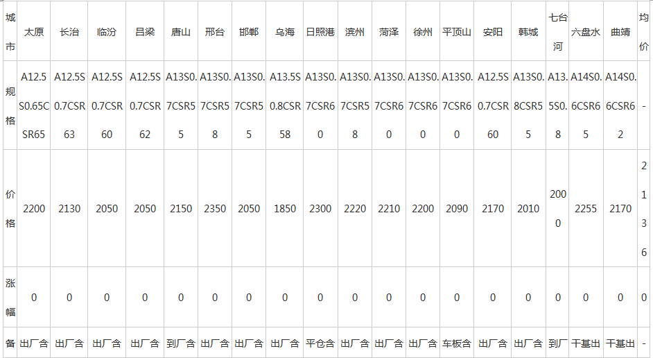23日全國主要城市冶金焦價格匯總