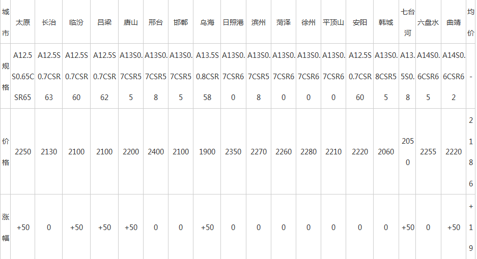 7日全國(guó)主要城市冶金焦價(jià)格匯總