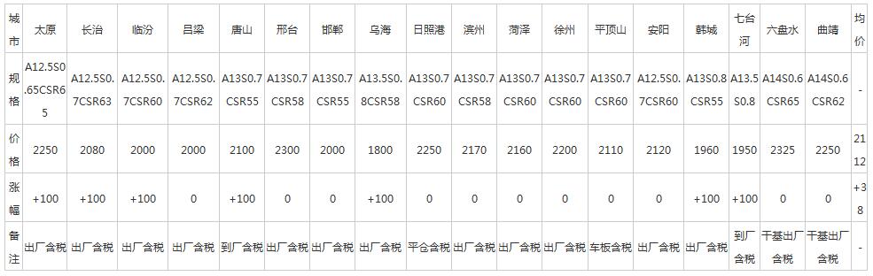 21日全國主要城市部分鋼廠鐵精粉采購價格匯總