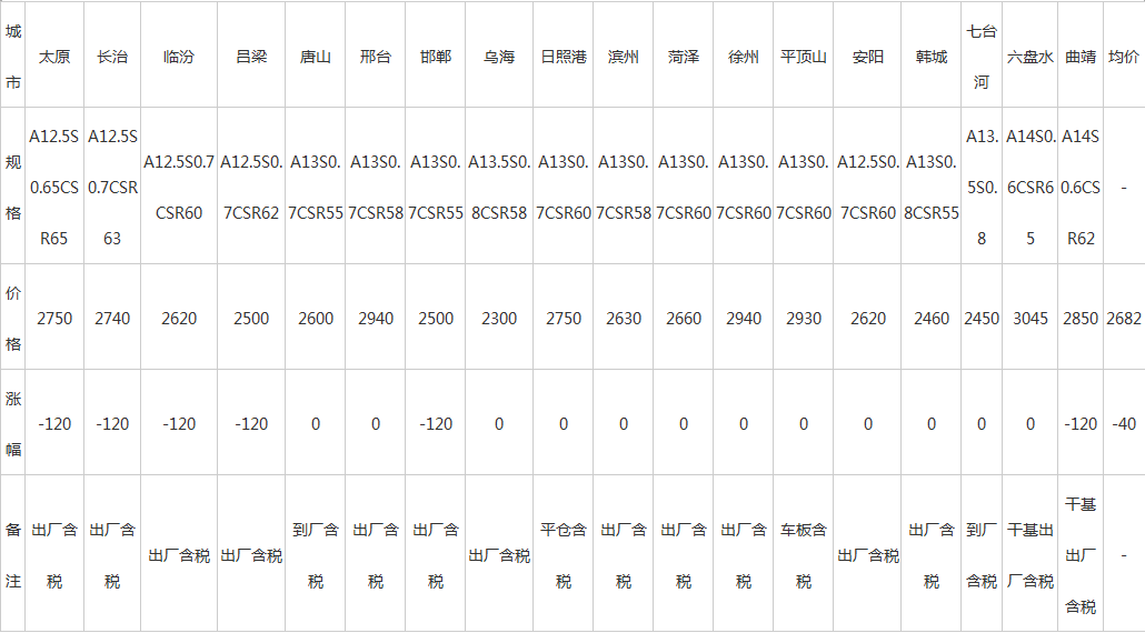 2021年7月16日全國(guó)主要城市冶金焦價(jià)格匯總