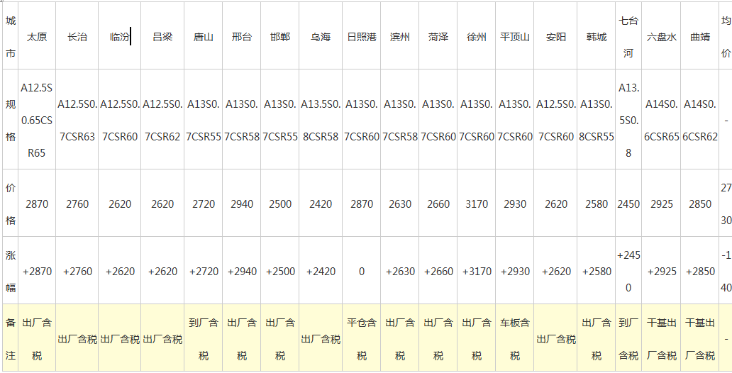 2021年7月30日全國(guó)主要城市冶金焦價(jià)格匯總