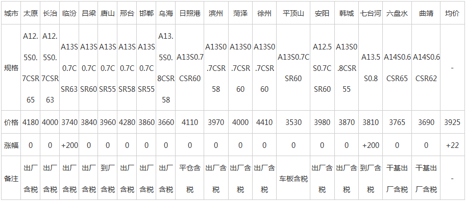 10日全國主要城市方坯價格匯總