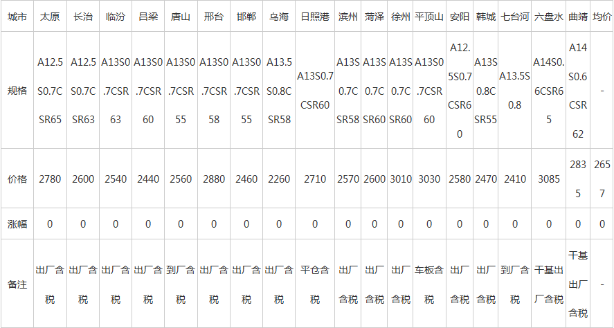 2021年12月14日全國主要城市直鋼筋價格匯總