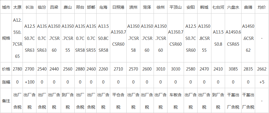10日全國(guó)主要城市冶金焦價(jià)格匯總