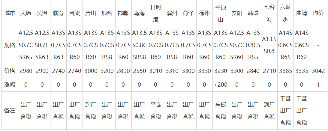 10日全國(guó)主要城市方坯價(jià)格匯總
