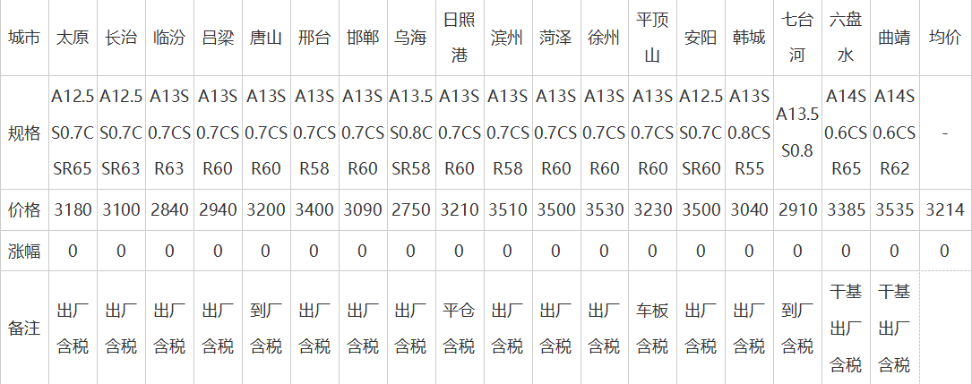 10日全國(guó)主要城市方坯價(jià)格匯總