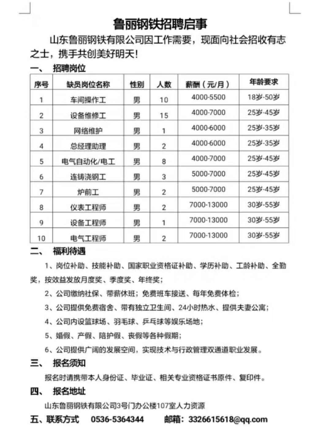 燒結(jié)各崗位班長(zhǎng),燒結(jié)普工,煉鐵熱風(fēng)班長(zhǎng),卷稱班長(zhǎng),爐前班長(zhǎng),水工班長(zhǎng),爐前工,煉鋼主任,一助手,連鑄機(jī)長(zhǎng),拉鋼工,大包工,爐前工和其他煉鋼普工,帶鋼生產(chǎn)主任,加熱爐主任,帶鋼各崗位操作工,招聘大量鉗工,焊工,電工,儀表工。