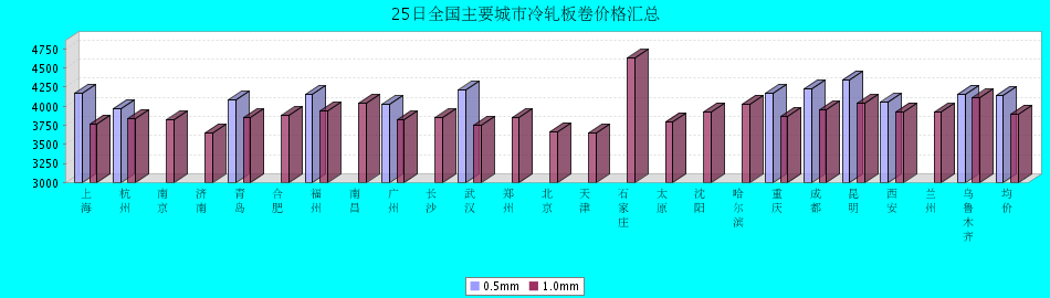 | 冷軋 | 上海 | 杭州 | 南京 | 濟南 | 青島 | 合肥 | 福州 | 南昌 | 廣州 | 長沙 | 武漢 | 鄭州 | 北京 | 天津 | 石家莊 | 太原 | 沈陽 | 哈爾濱 | 重慶 | 成都 | 昆明 | 西安 | 蘭州 | 烏魯木齊 | 均價 |