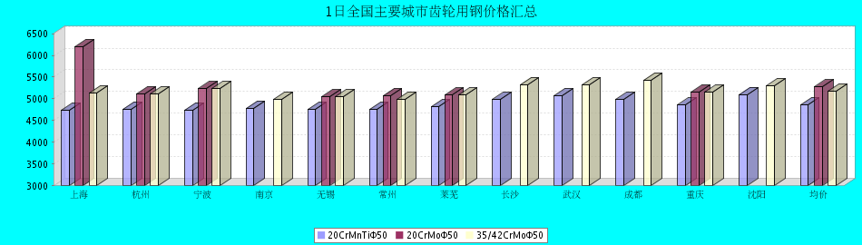 | 齒輪鋼 | 上海 | 杭州 | 寧波 | 南京 | 無(wú)錫 | 常州 | 萊蕪 | 長(zhǎng)沙 | 武漢 | 成都 | 重慶 | 沈陽(yáng) | 均價(jià) |