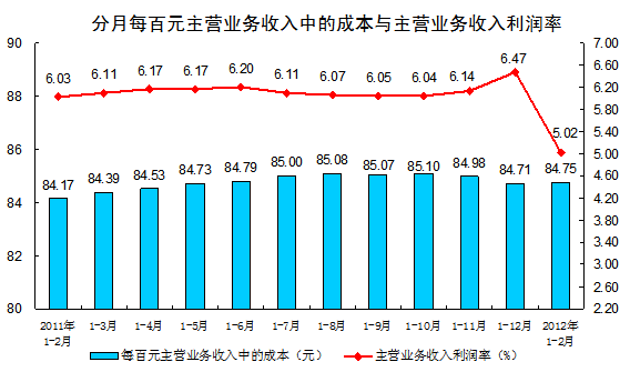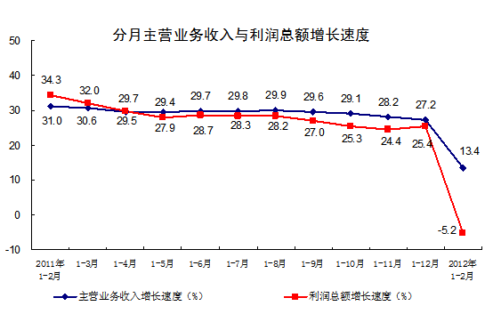 1-2月份全國規(guī)模以上工業(yè)企業(yè)實(shí)現(xiàn)利潤同比下降5.2%