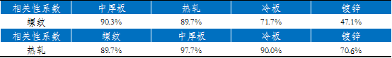 表2 螺紋和熱軋與各品種價格相關性分析