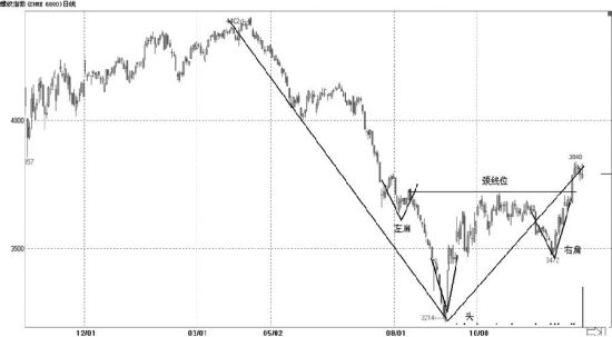 從日K線走勢(shì)上看,2012年螺紋鋼期貨價(jià)格走勢(shì)整體呈現(xiàn)反勾型,期貨價(jià)格從4月份一路振蕩下跌至3214元/噸,在9月探底并逐漸企穩(wěn)回升。形態(tài)上,日K線在經(jīng)過(guò)了觸底反彈以及此后的盤(pán)整回升后,有形成“頭肩底”經(jīng)典底部K線形態(tài)的可能,頸線位在3790—3800元/噸區(qū)間,右肩相較于左肩稍低一些。目前價(jià)格處于3790—3800元/噸盤(pán)整確認(rèn)反抽,如果后市能進(jìn)一步突破3800元/噸,則基本確認(rèn)“頭肩底”形態(tài)成立。