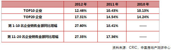 2012年度房地產(chǎn)行業(yè)集中度進(jìn)一步提升