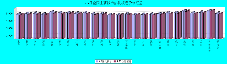 | 4.75熱軋板卷 | 4820 | 4870 | 4880 | 4830 | 5000 | 4960 | 5020 | 4940 | 4950 | 4850 | 4880 | 4780 | 4760 | 4830 | 4780 | 4820 | 4790 | 4890 | 4910 | 5010 | 5260 | 4950 | 5080 | 5300 | 4923 |