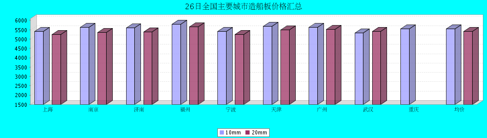 全國8個(gè)主要城市20mm造船板平均價(jià)格與上一交易日下跌10元/噸,平均價(jià)為5417元/噸。