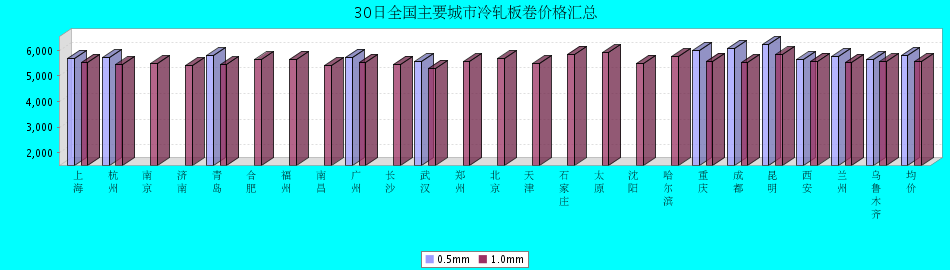 | 冷軋 | 上海 | 杭州 | 南京 | 濟南 | 青島 | 合肥 | 福州 | 南昌 | 廣州 | 長沙 | 武漢 | 鄭州 | 北京 | 天津 | 石家莊 | 太原 | 沈陽 | 哈爾濱 | 重慶 | 成都 | 昆明 | 西安 | 蘭州 | 烏魯木齊 | 均價 |