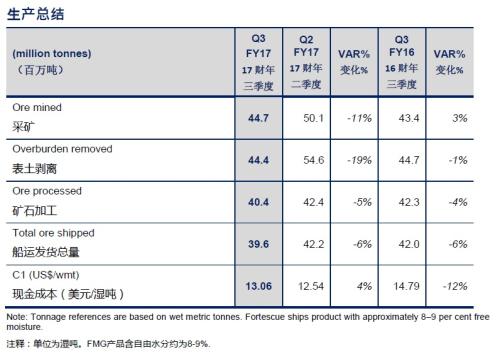 FMG2017年3月季度生產(chǎn)報(bào)告:本季共發(fā)3960萬噸鐵礦