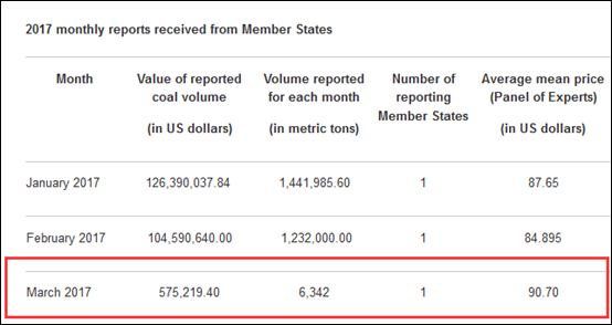 聯(lián)合國(guó):3月份朝鮮出口煤炭總額僅為57萬(wàn)美元 前兩月超1億