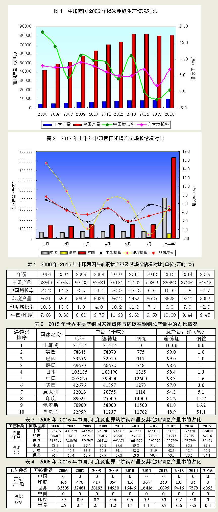 對(duì)比中印兩國(guó)鋼鐵生產(chǎn)中的煉鋼工藝,總體上來(lái)說(shuō),中國(guó)的煉鋼工藝結(jié)構(gòu)合理、技術(shù)先進(jìn),符合世界鋼鐵生產(chǎn)大趨勢(shì);而印度的煉鋼工藝結(jié)構(gòu)不夠合理,技術(shù)比較落后,與世界鋼鐵生產(chǎn)的平均水平尚有較為明顯的差距。
