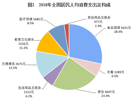 2018年,全國居民人均消費(fèi)支出19853元,比上年名義增長8.4%,扣除價(jià)格因素,實(shí)際增長6.2%。其中,城鎮(zhèn)居民人均消費(fèi)支出26112元,增長6.8%,扣除價(jià)格因素,實(shí)際增長4.6%;農(nóng)村居民人均消費(fèi)支出12124元,增長10.7%,扣除價(jià)格因素,實(shí)際增長8.4%。