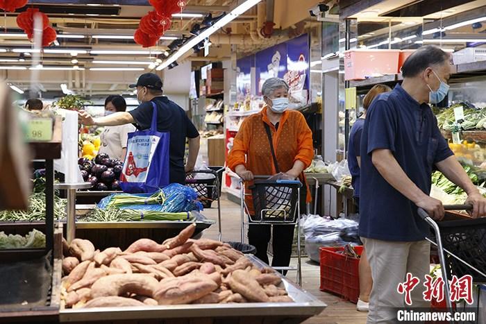 資料圖:市民在一家超市內(nèi)采購蔬菜。中新社記者 蔣啟明 攝