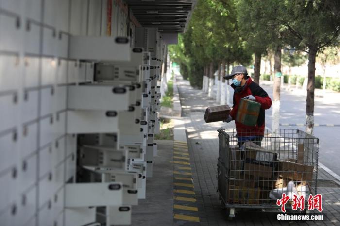 資料圖:工作人員把快件放入快遞柜內(nèi),方便居民“零接觸”取件。中新社記者 蔣啟明 攝