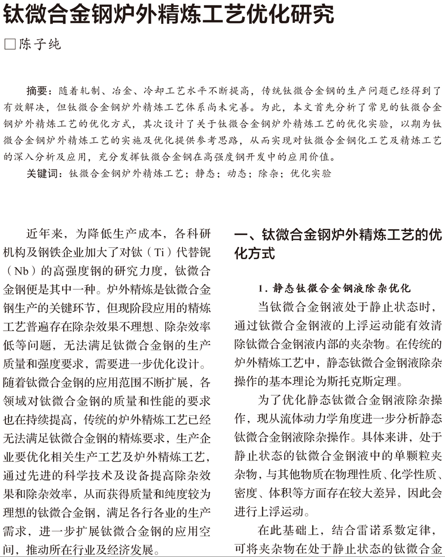 鈦微合金鋼爐外精煉工藝優(yōu)化研究