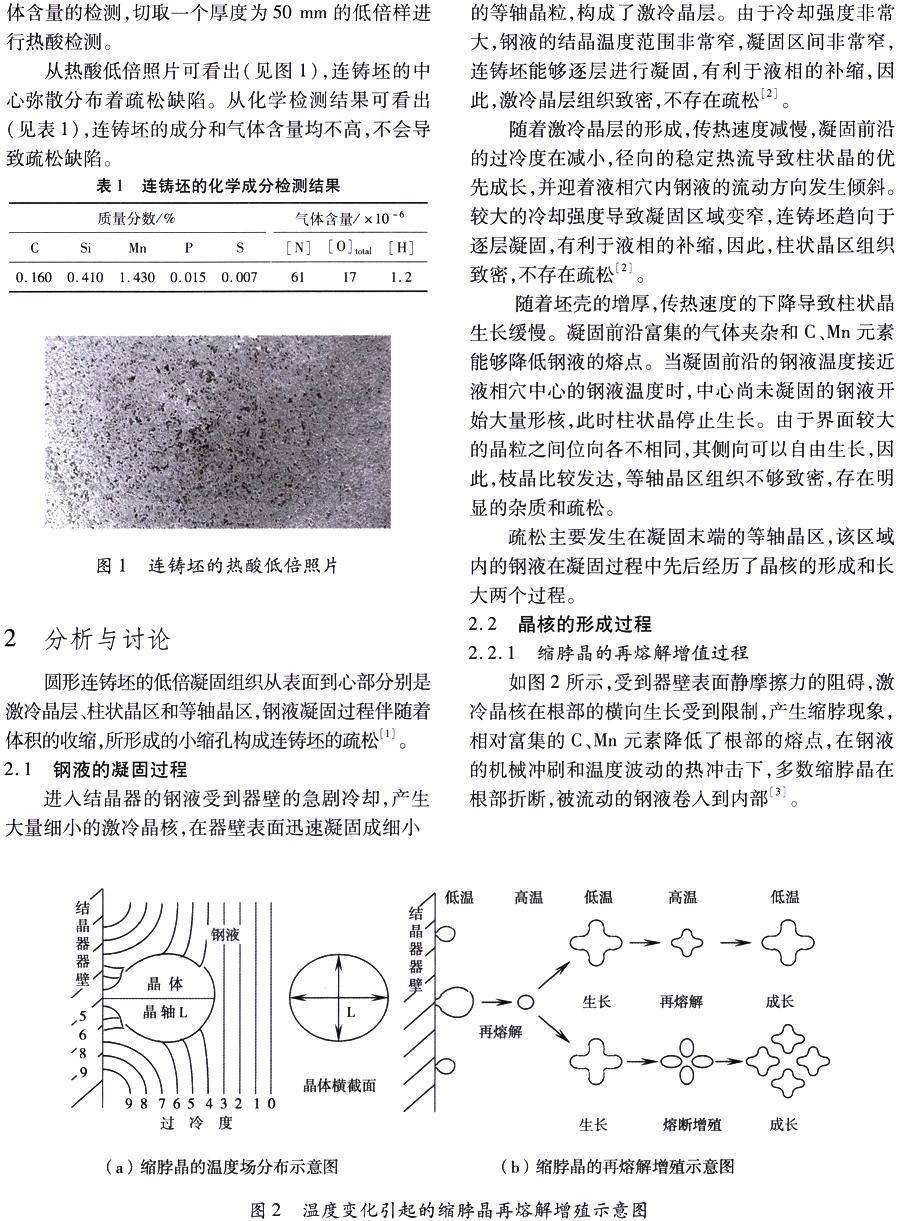 Q345B 圓形連鑄坯中心疏松的成因分析