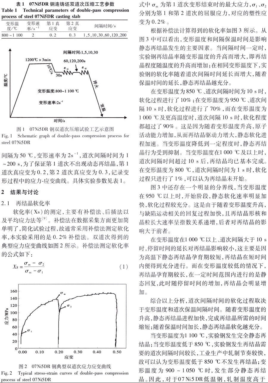 Ni5DR低溫鋼150mm連鑄板坯靜態(tài)再結(jié)晶行為研究