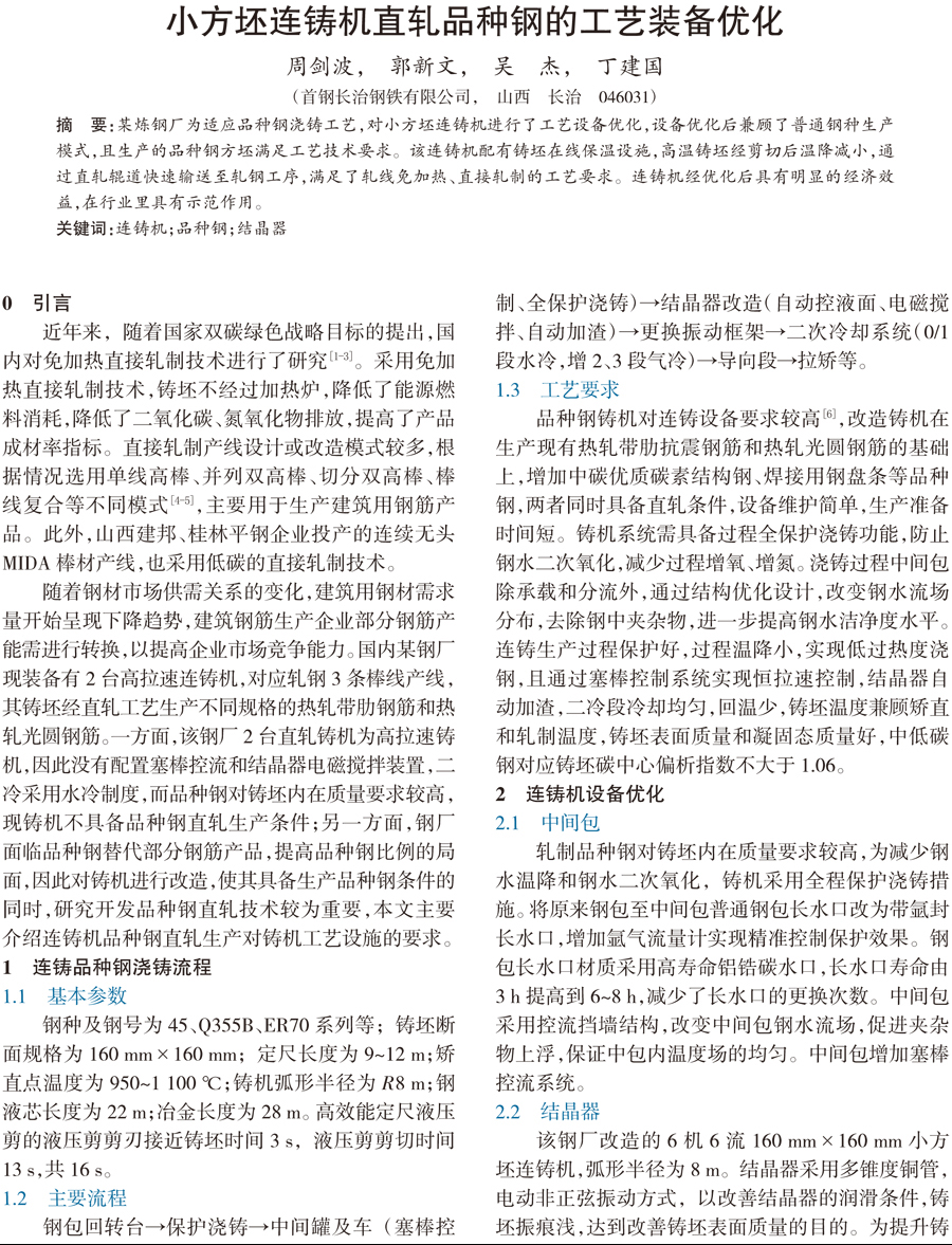 小方坯連鑄機(jī)直軋品種鋼的工藝裝備優(yōu)化