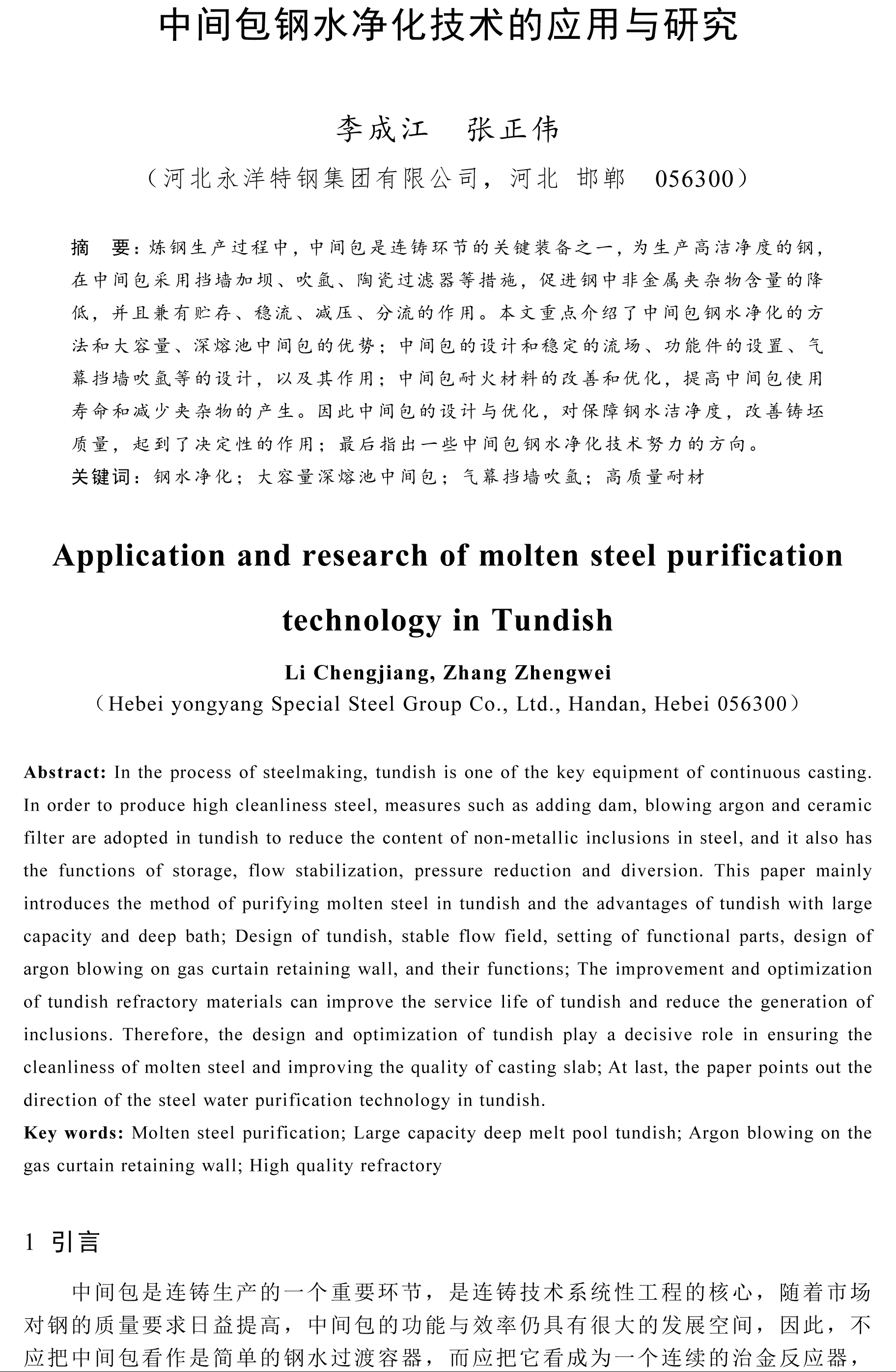 中間包鋼水凈化技術(shù)的應(yīng)用與研究