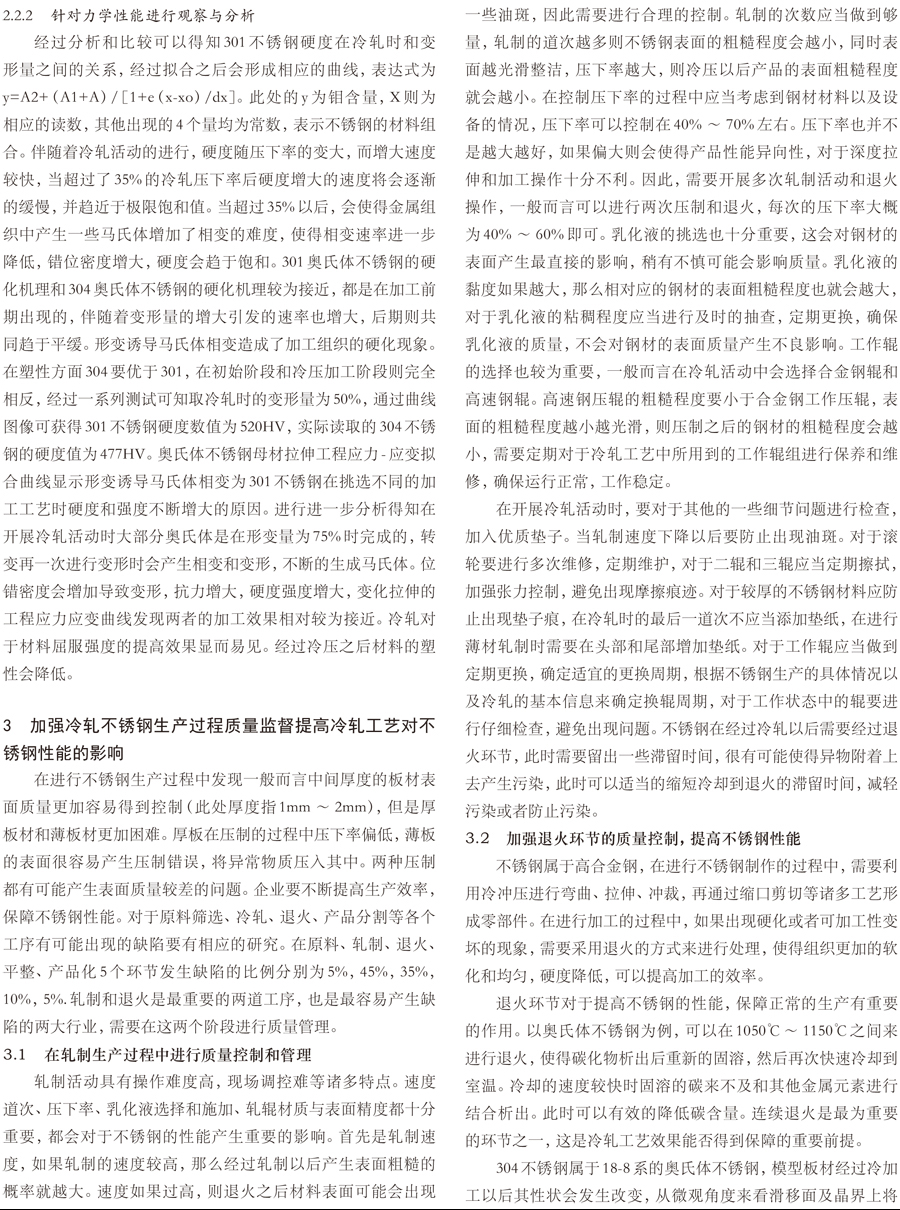 冷軋工藝對(duì)不銹鋼性能影響的分析
