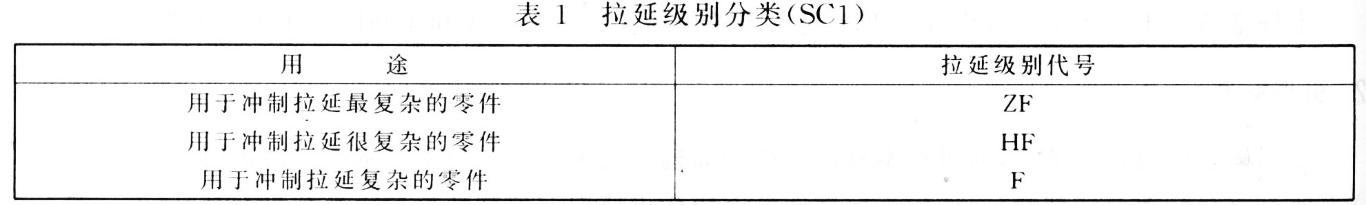 3.2.1 對牌號SCl。按用途將拉延級別分類.如表1所示: