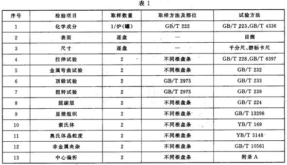 每批盤條的檢驗項目、試驗方法應(yīng)按表1的規(guī)定。